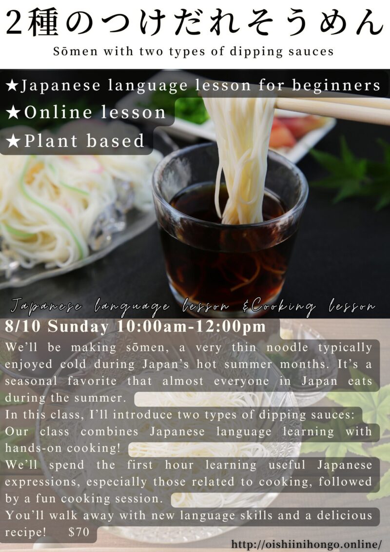 日本語のレッスンなしで、日本料理だけを習いたい方にオススメです。こちらのコースでは英語を使って行います。現在全てのレッスンはズームを使って行いますので、ご自身の携帯やパソコンにズームをダウンロードしておいてから参加してください。